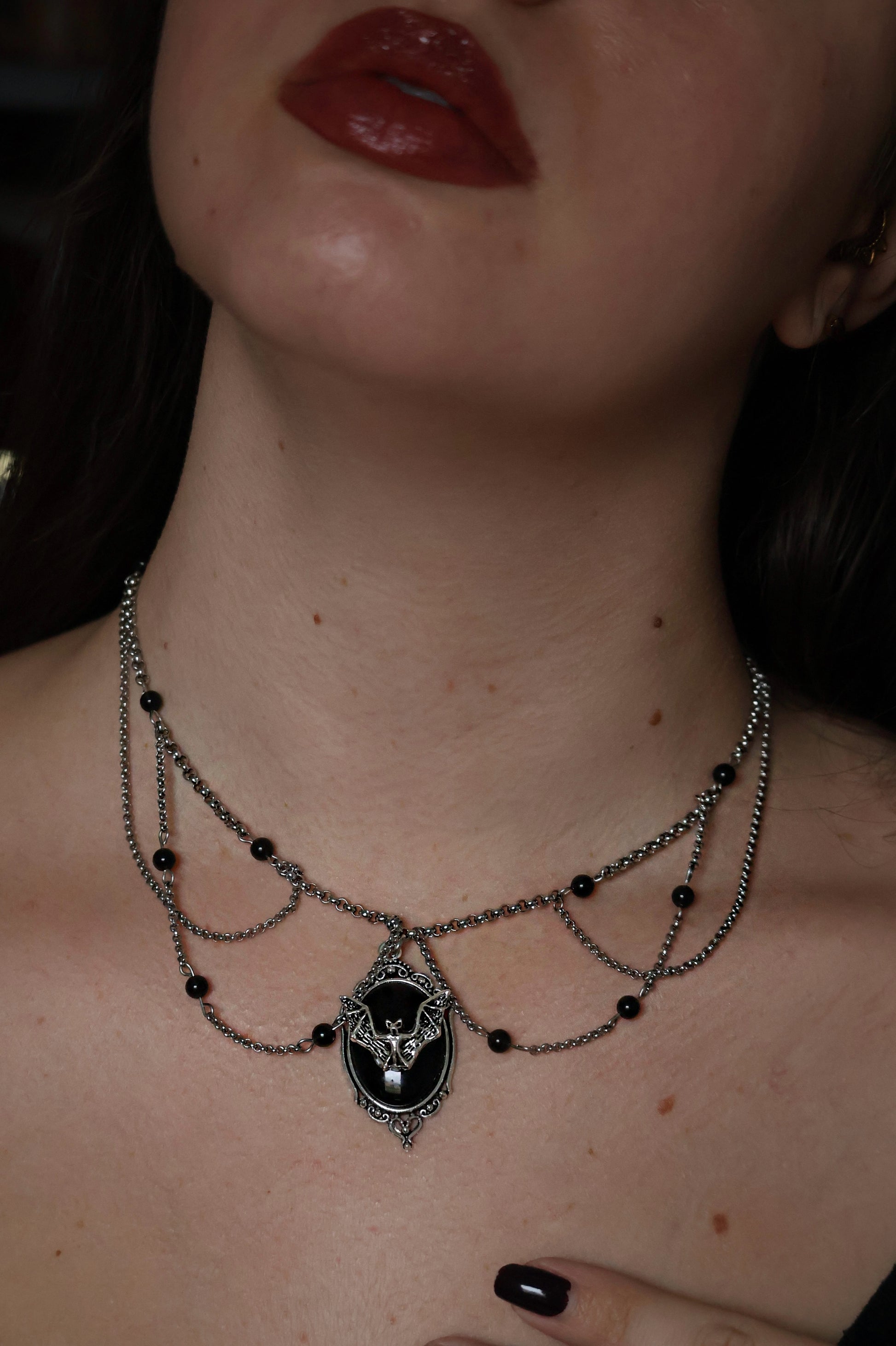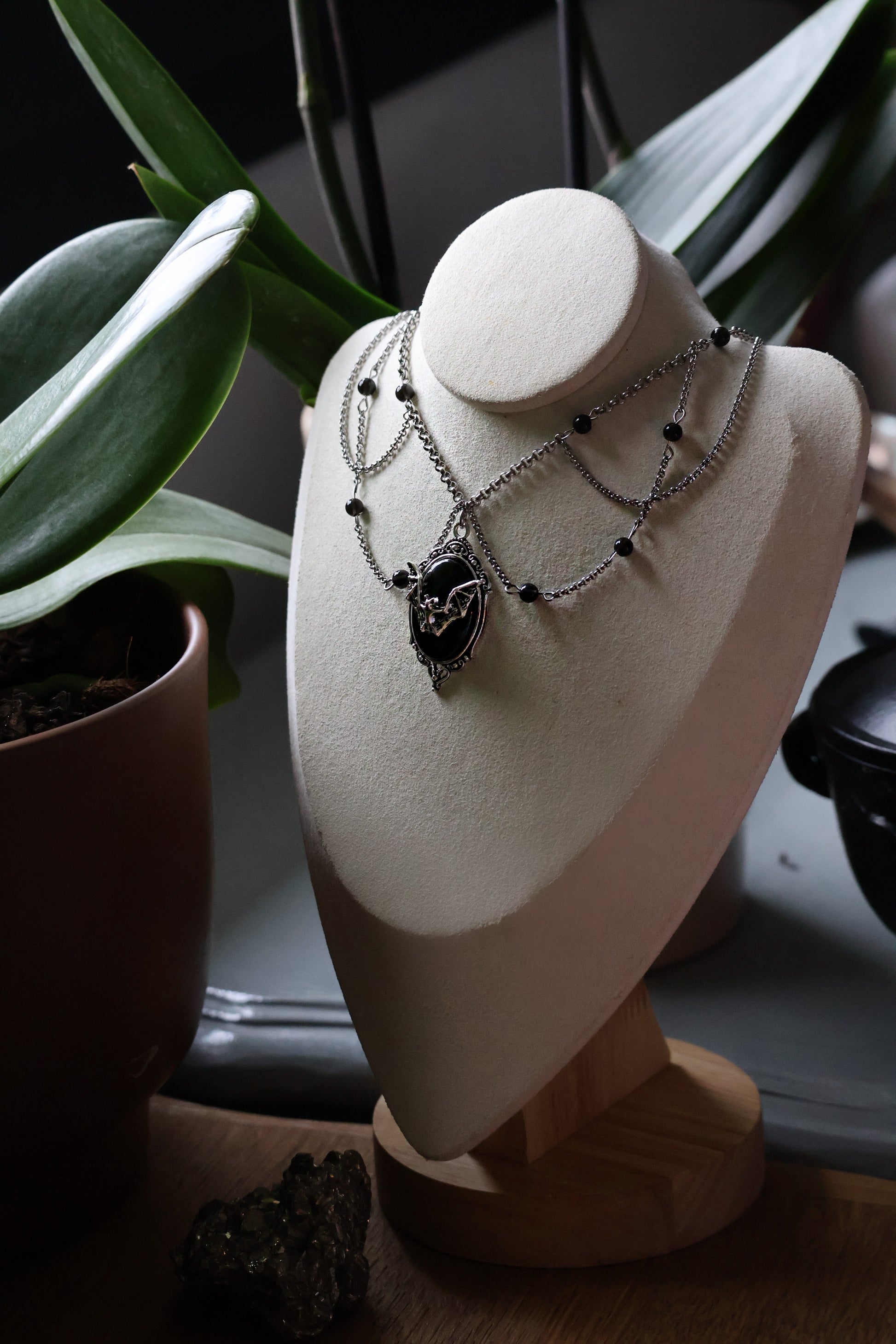- Matériaux : pierres, chaînes acier inoxydables, pendentif en métal ( peut s’oxyder ) et verre