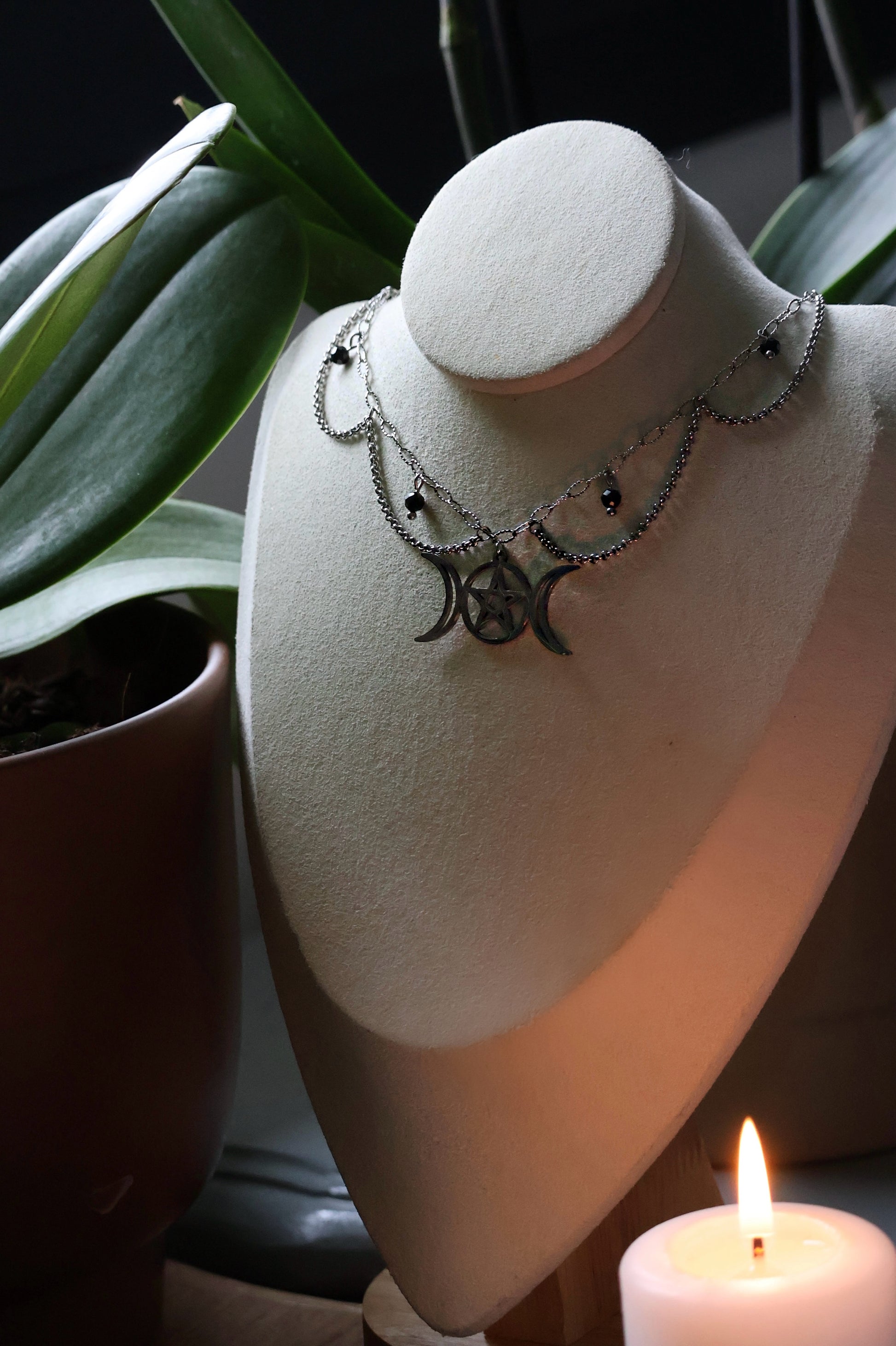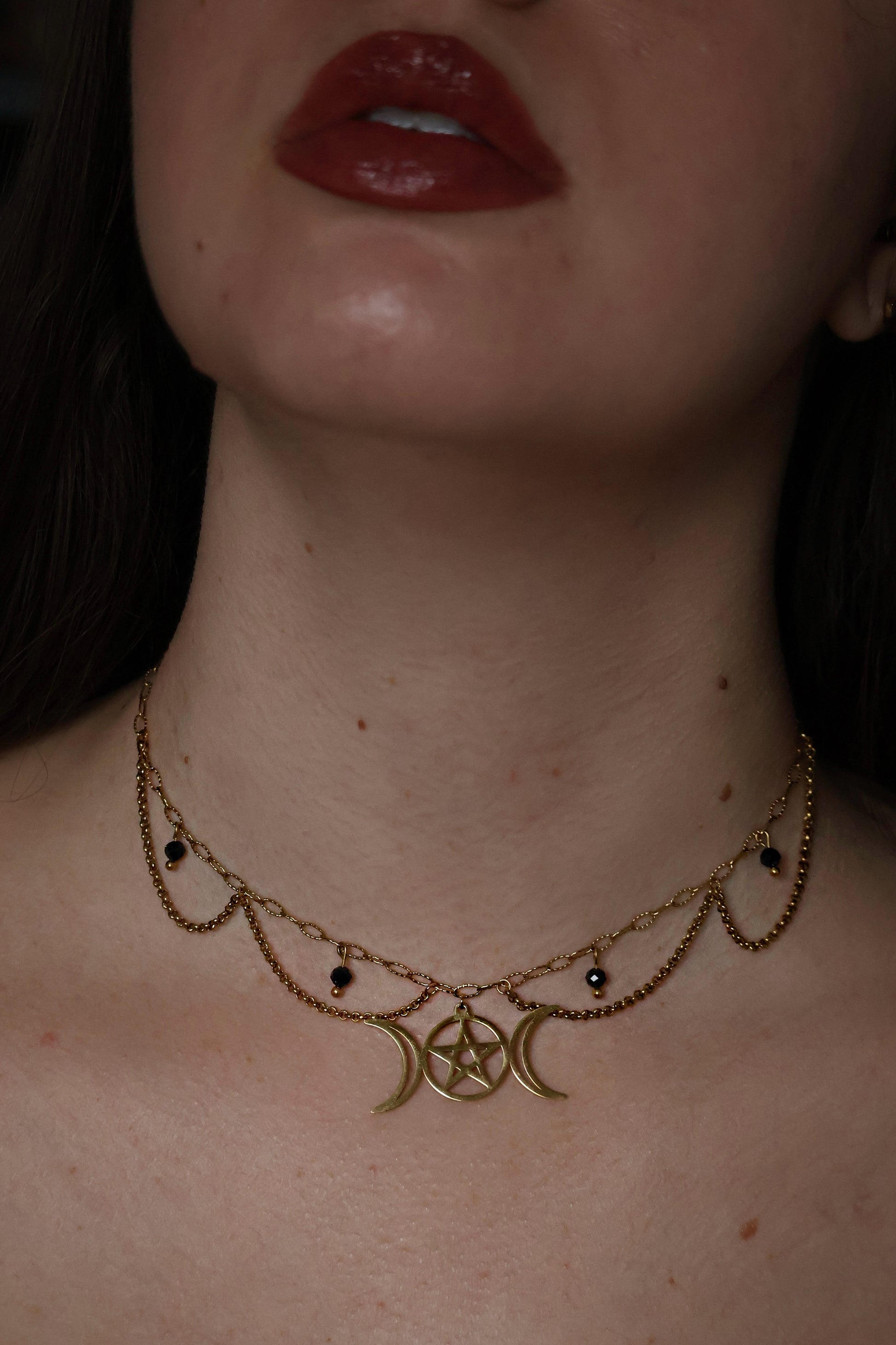 Le pentacle sacré s’unit aux deux lunes pour invoquer équilibre, protection et magie.